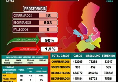 | #Salud El departamento de #LaPaz inicia la semana con 18 nuevos contagi…