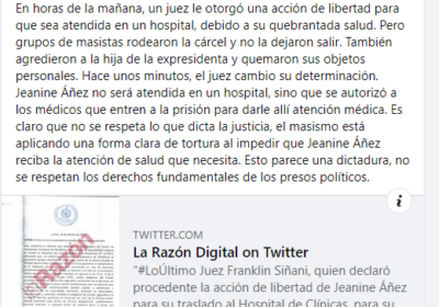 Carolina Ribera, hija de la expresidenta Jeanine Añez, denunció que…