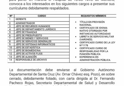 La Gobernación de #SantaCruz difunde los requisitos para la contratación de…