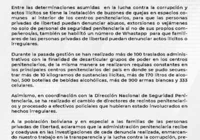 (HILO) #ANF La Dirección de Régimen Penitenciario señala que en la última gestió…