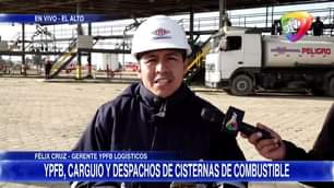 Félix Cruz gerente YPFB logístico anuncia desde la planta de Senkata que se cargan y despachan cisternas de combustibles con normalidad. 29/11/202329/11/2023