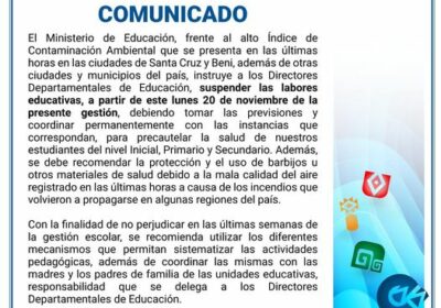 Ministerio Educación suspenden clases en ciudades y regiones afectadas por humo ante incendios 19/11/2023