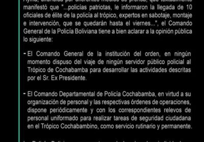 Policía Boliviana desmiente a Evo Morales sobre envio de expertos en sabotaje al trópico de Cochabamba 02/10/202302/10/2023