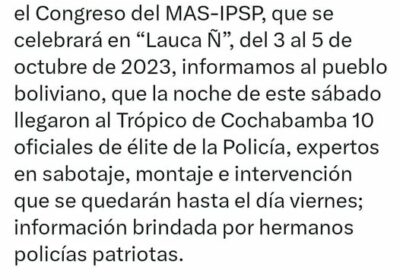 Evo dice que policías «patriotas» le informaron la llegada de 10 oficiales de elite de la policía al trópico expertos en 01/10/2023