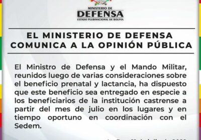 Ministerio de Defensa anuncia pago de beneficio prenatal y lactancia en especie a partir del mes de julio 21/07/2022