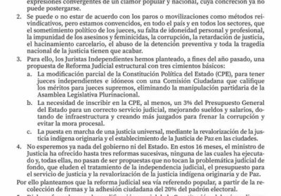 Juristas Independientes plantean referendo para modificar parcialmente CPE y reformar la justicia 08/03/2022