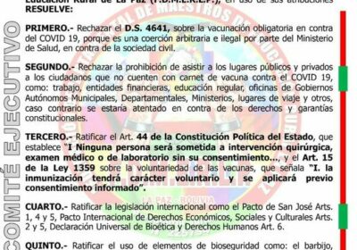 Organizaciones sociales exigen abrogación del D.S. 4640 y destitución del ministro de Salud 31/12/2021