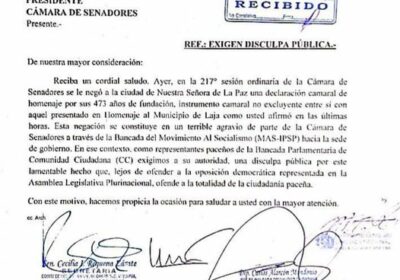 Parlamentarios CC exigen disculpas públicas del presidente del Senado por negar homenaje a La Paz 22/10/2021
