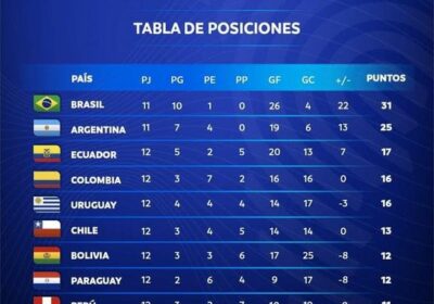 Así queda la tabla de posiciones luego de la victoria se la selección boliviana frente a Paraguay, en las eliminatorias 15/10/2021
