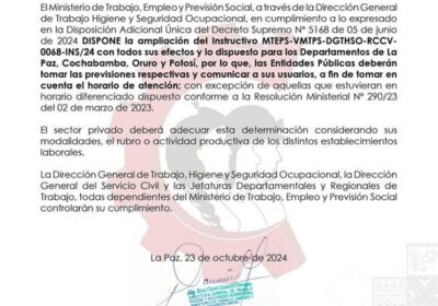 Ministerio de Trabajo dispone la ampliación del horario continuo por la escasez de combustible El Ministerio de Trabajo… 24/10/2024