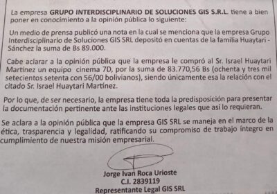 La empresa GIS le compró al Presidente de la Cámara de Diputados, Israel Huaytari, un equipo Cinema 7D y por ello le hiz… 12/05/2024
