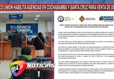 Banco Central de Bolivia habilita mas agencias en Cochabamba y Santa Cruz para la venta de dolar 10/03/2023