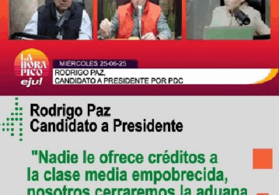Rodrigo Paz: «Nadie le ofrece créditos a la clase media empobrecida, nosotros cerraremos la aduana y bajaremos impuesto… 26/06/2025