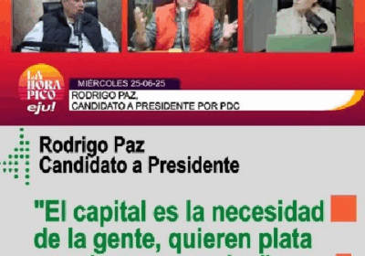 Rodrigo Paz: «El capital es la necesidad de la gente, quieren plata para hacer negocios» eju.tv … 26/06/2025