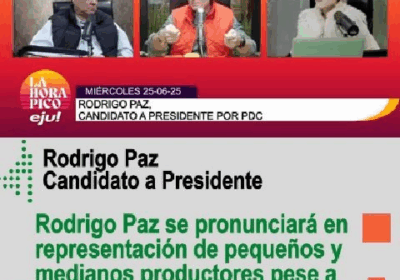 Rodrigo Paz se pronunciará en representación de pequeños y medianos productores pese a no ser invitado al foro de la CA… 26/06/2025