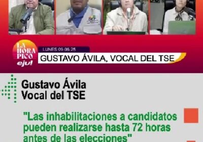 Gustavo Ávila:»Las inhabilitaciones a candidatos pueden realizarse hasta 72 horas antes de las elecciones» eju.t… 09/06/2025