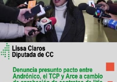 La diputada de Comunidad Ciudadana (CC), Lissa Claros, denunció este viernes la existencia de un presunto y “oscuro acu… 06/06/2025