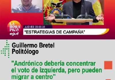 Guillermo Bretel:»Andrónico debería concentrar el voto de izquierda, pero pueden migrar a centro» eju.tv … 05/06/2025