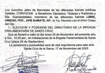 Lara viajó a Brasil y no pudo ir al Beni. Está en misión oficial en Brasil, junto a dos mi 18/11/2025