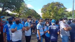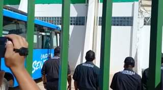 Escoltados por la policía jugadores del Club Bolívar se dirigen al Estadio Ramón Tahuiche … 05/06/2022