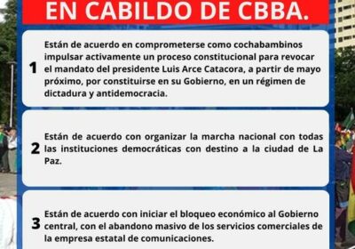 3 acciones fueron planteadas y aprobadas en Cochabamba, durante el Cabildo Nacional por la libertad y democracia. 25/01/2023
