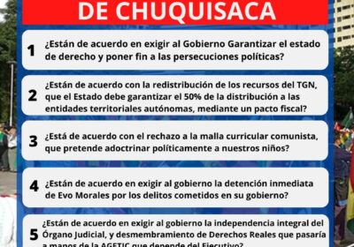 Las diez 10 preguntas leídas por el Comité Cívico de Chuquisaca fueron aprobadas por la población. 25/01/2023