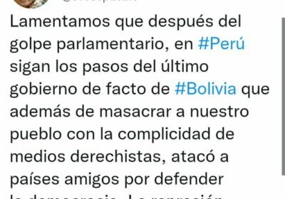 Evo lamenta que «después del golpe parlamentario, en Perú sigan los pasos del último gobie… 21/12/2022