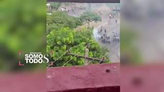Una vista desde altura muestra la magnitud de los enfrentamientos esta mañana en la feria… 10/12/2022