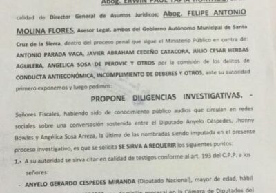 Alcaldía cruceña pide investigar a diputado Céspedes, Angélica Sosa y Jhonny Bowles por audio en el que se pide $us 200.000 08/12/2022
