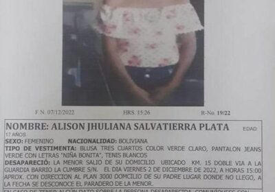 #AyudemosACompartir Buscan a Alison Jhuliana Salvatierra Plata de 17 años, quién fue vist… 08/12/2022