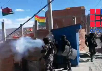 Policía lanza gases desde la Periférica hacia la manifestación de cocaleros. Vec…