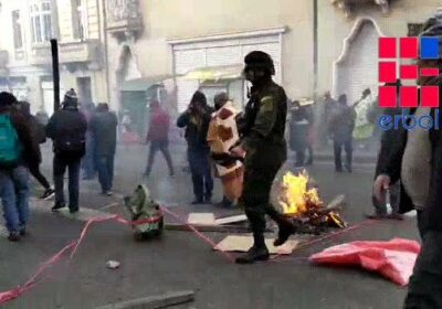 #LaPaz | La Policía desbloquea la avenida Camacho. La vía estaba cerrada por int…