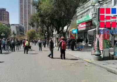 Trabajadores en salud marchan cerca a la plaza Murillo. Cumplen paro movilizado …