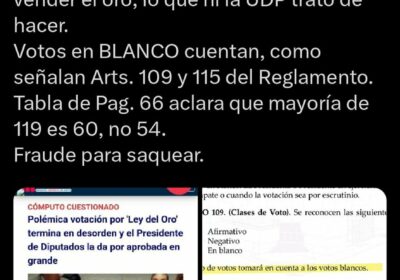 Tras la polémica aprobación en grande de la Ley del Oro, Tuto Quiroga denuncia «fraude para saquear» 21/04/2023