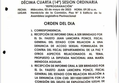 Fiscal General Juan Lanchipa brindara informe oral en comision de diputados por una denuncia de acoso sexual en contra del fiscal dptal de La Paz, William Alave 03/05/2023