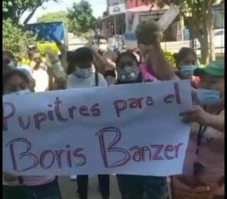 Protesta de madres de familia, exigen pupitres para los alumnos del colegio Boris Banzer. … 28/03/2022