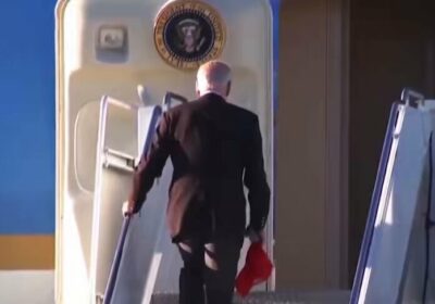 Biden es visto subiendo al Air Force One sosteniendo una gorra roja. …