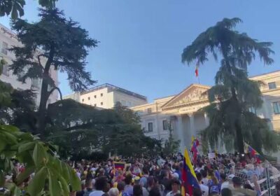 AHORA Miles de venezolanos en Madrid se encuentran frente al Congreso de los…