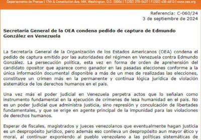 ÚLTIMO MINUTO La Secretaría General de la OEA ha condenado enérgicamente la…