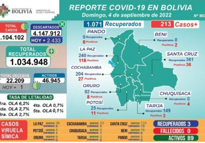 Salud reporta este domingo 213 nuevos contagios de Covid-19 y un deceso. A…