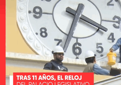 Tras 11 años girando al revés el histórico Reloj del Palacio Legislativo, en la plaza Murillo de La Paz, volvió a girar… 06/11/2025